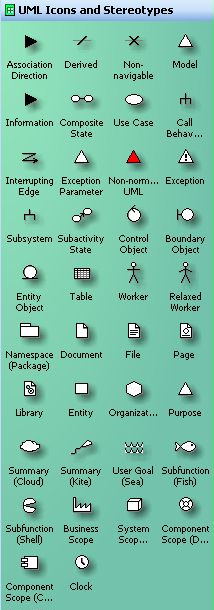 Thank you for your interest in the stencil and template for the drawing tool Visio. The stencil supports all symbols of UML 1.5, specified in the OMG document formal/03-03-01, as well as previous UML versions 1.4, 1.3 and 1.1. The stencil also contains several symbols of the newly adopted UML 2.0, particularly, the Socket and new Pseudostate symbols, and additional symbols not specified by the standard, but used by many UML users.