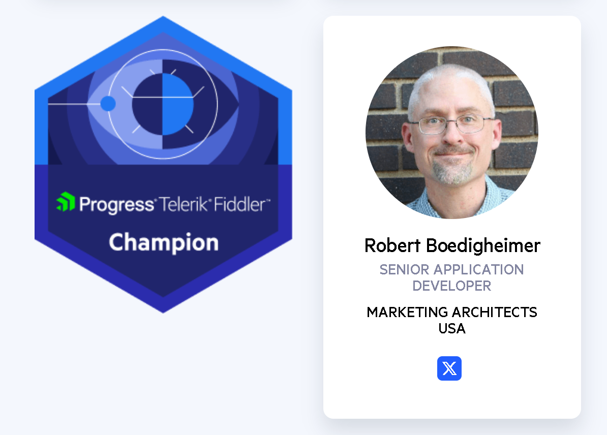 Excited to be recognized as a Progress Champion https://www.progress.com/champions for community activities related to Fiddler!