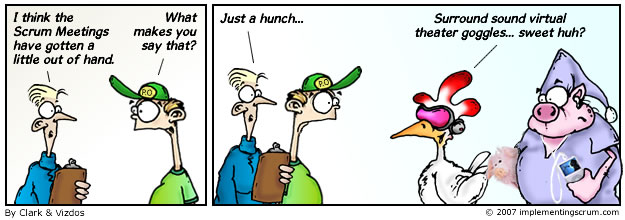 Mike Vizdos over at Implementing Scrum has a cartoon this week called Work Naked on dysfunctional things he sees at the daily scrum and yes, the Scrum Witch made an appearance (although it would have been awesome if she made it into the cartoon, ahh someday...)