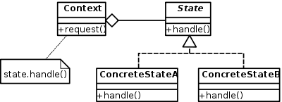 State pattern is a typical way to implement state machine. The following picture is stolen from Wikipedia: