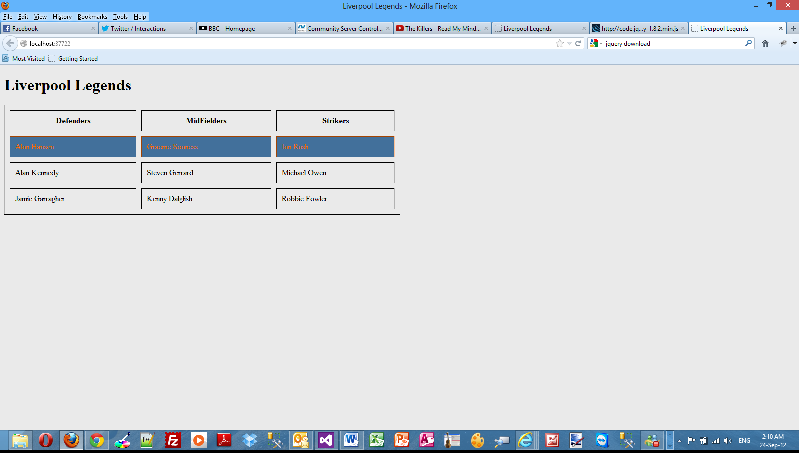 11) Run your application and see the row changing background color and text color every time the user hovers over it.