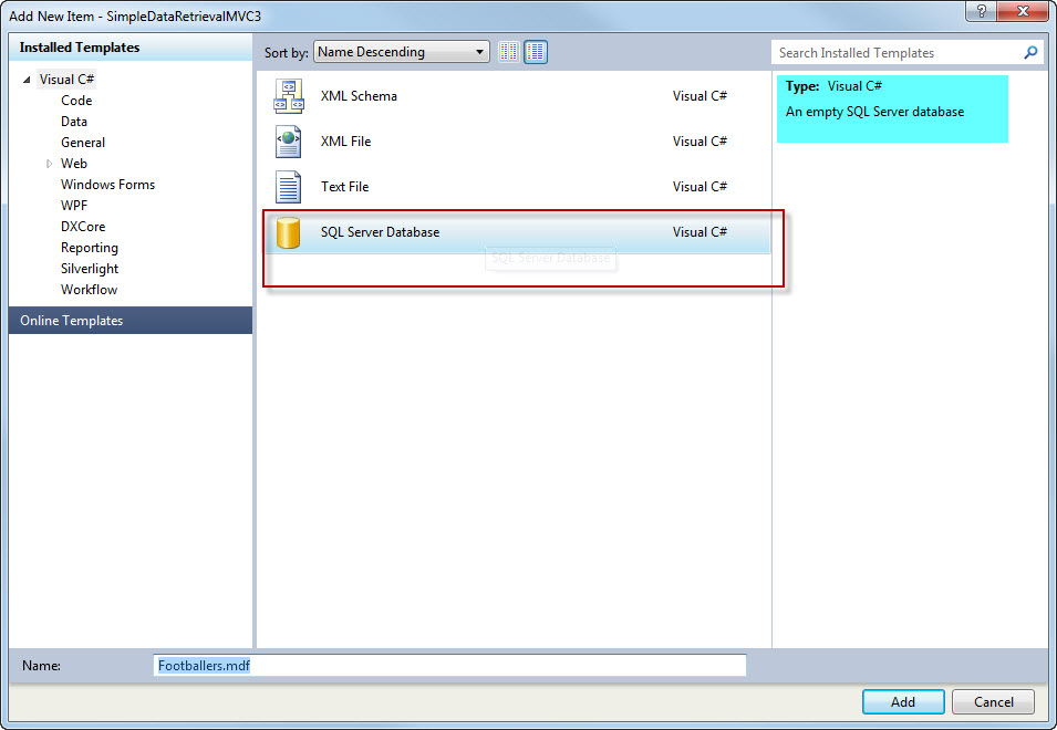In this post I would like to show with a hands-on example on how to retrieve data from an sql server database table using C# and ASP.Net MVC 3.