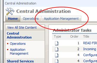 Start by going to Administrative Tools in Windows. Select SharePoint 3.0 Central Administration. This opens the admin web site.