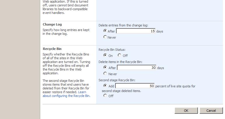 You can turn off the recycle bins (not recommended), change the user level or the admin level recycle bin settings and then save your new values. What I'm not sure about is the quota in a multi-server setting primarily because I don't know where the recycle bin items are saved. If anyone knows, please post a comments. Thanks!