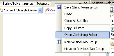 Visual Studio 2005 does it when you select "Open Containing Folder in the File tabs: