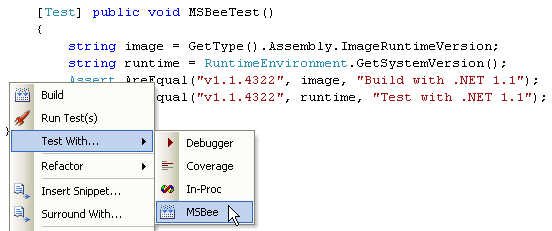 If you look at the test code, you can see our test was successfully built and executed using .NET 1.1.