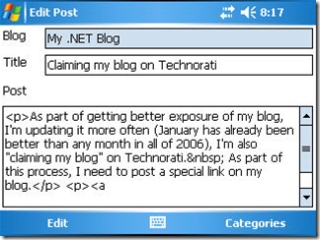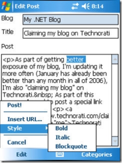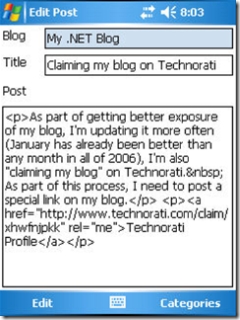 Although Keith Elder recommended I put my mobile blogging app up on CodePlex, I'm going to hold off on that for a while. Here's why: