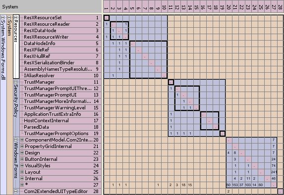 Easy .NET architecture analysis from within VS2005 - Visualizing your code dependencies with a Dependency Structure Matrix